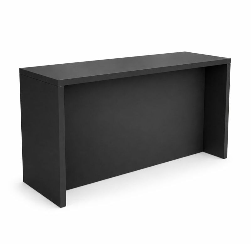 Der großzügige Brückentisch in Schwarz mit durchgehender Frontblende eignet sich ideal für große Messen, Firmenveranstaltungen und hochwertige Präsentationsflächen. Die Blende unterstützt einen aufgeräumten Gesamteindruck und lenkt den Fokus auf Marke und Inhalte.