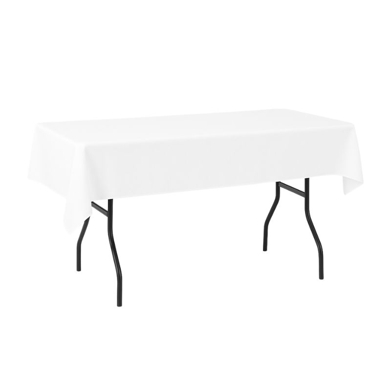 Der Banketttisch der Länge 183 cm und Breite 76 cm mit weißer Tischdecke ist die ideale Lösung für Bankette in München. Die Tischdecke hat einen Überhang von 25 cm je Seite.